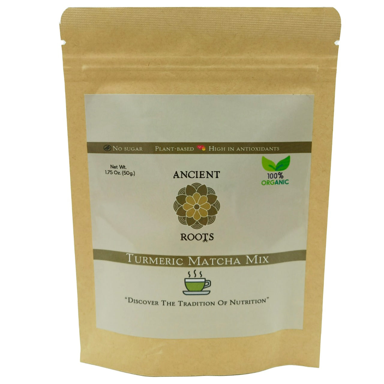 Ancient Roots Turmeric Matcha Mix - With Cinnamon, Ginger, and Black Pepper (1.75 Ounces, 30 Servings)